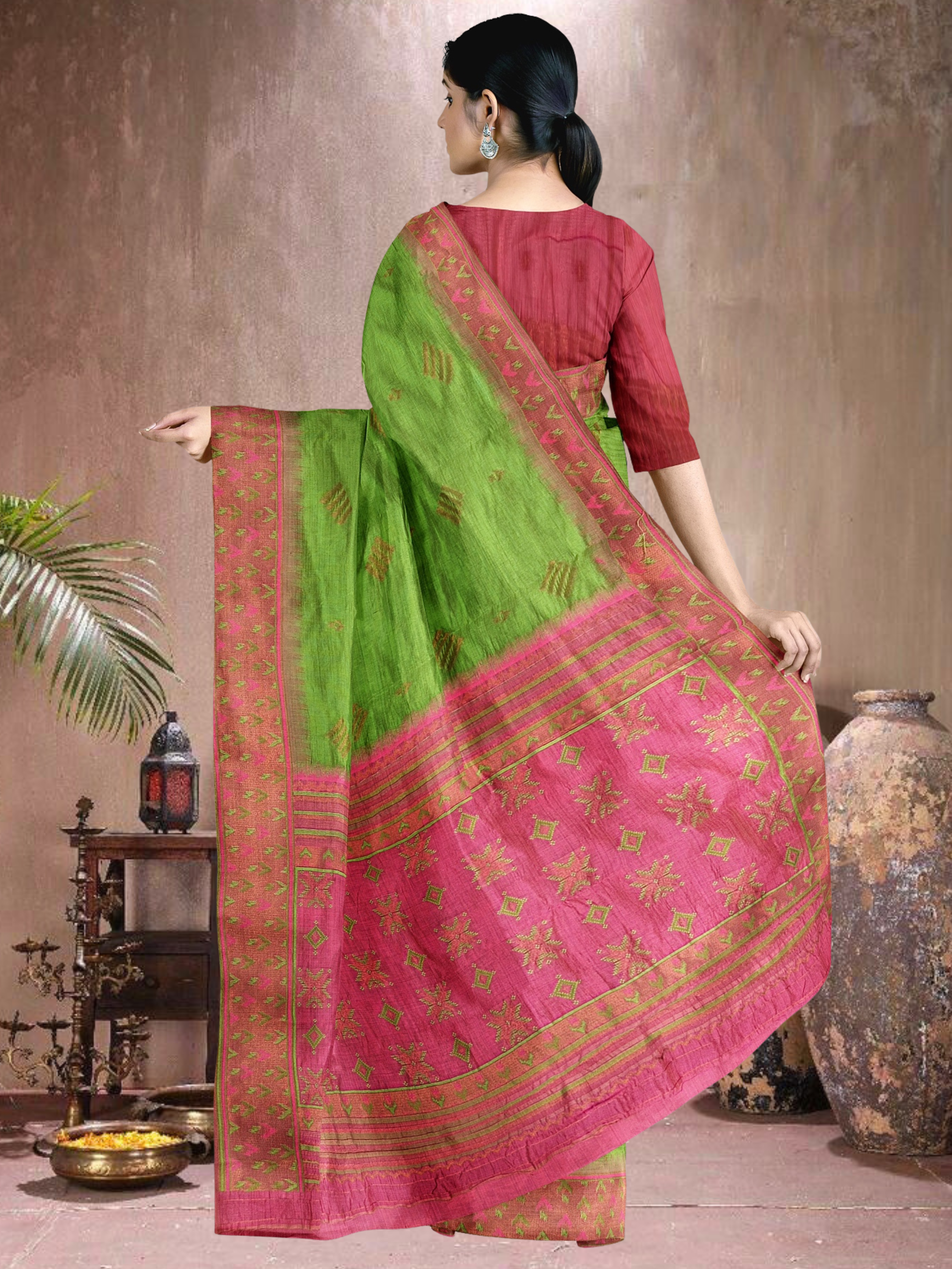 Colour: Green / Rani Pink (Contrast Pallu and Blouse)