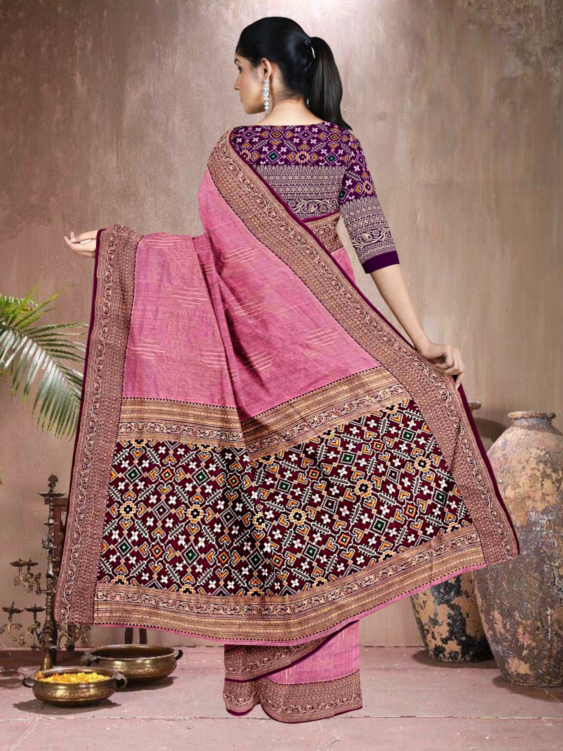 Colour: Pink Body / Purple Pallu, Blouse & Border Contrast